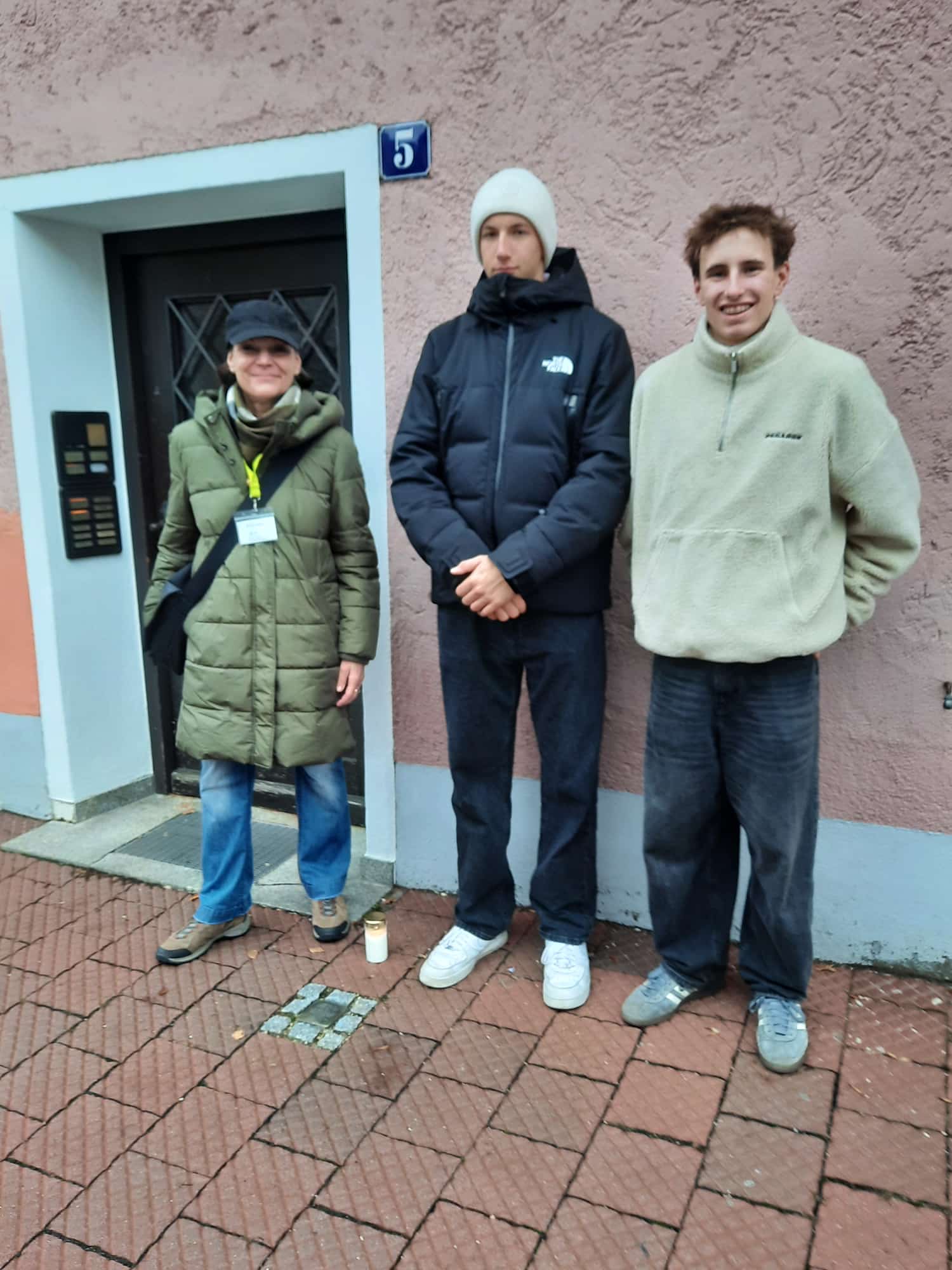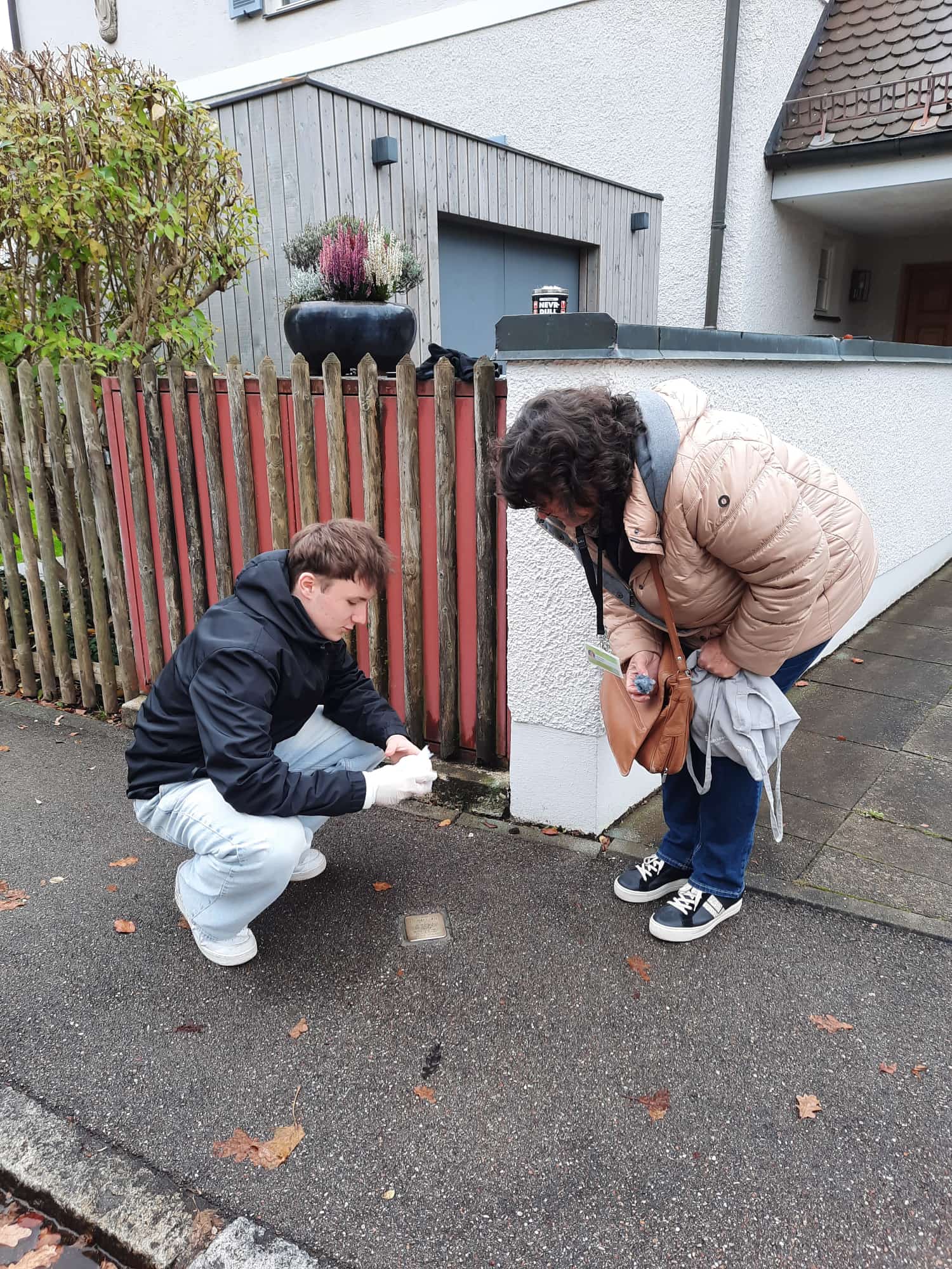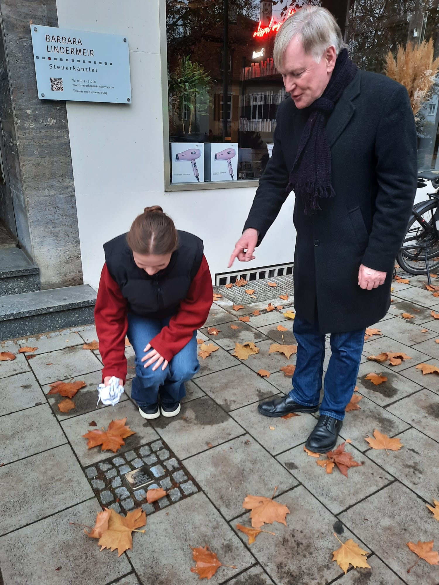 Das P-Seminar von Frau Bäuml hat sich am heutigen Sonntag getroffen, um die Stolpersteine der verschleppten und ermordeten jüdischen Mitbürger Dachaus zu putzen und so ihrer zu gedenken. Diese Aktion des ITG wird mit den Damen und Herren vom Dachauer Gästeführer e.V. durchgeführt, die jedes Jahr am 9. November an den ehemaligen Wohnorten, also an den Stolpersteinen, stehen und durch Erzählungen aus dem Leben dieser Opfer der Shoa deren Andenken lebendig halten.