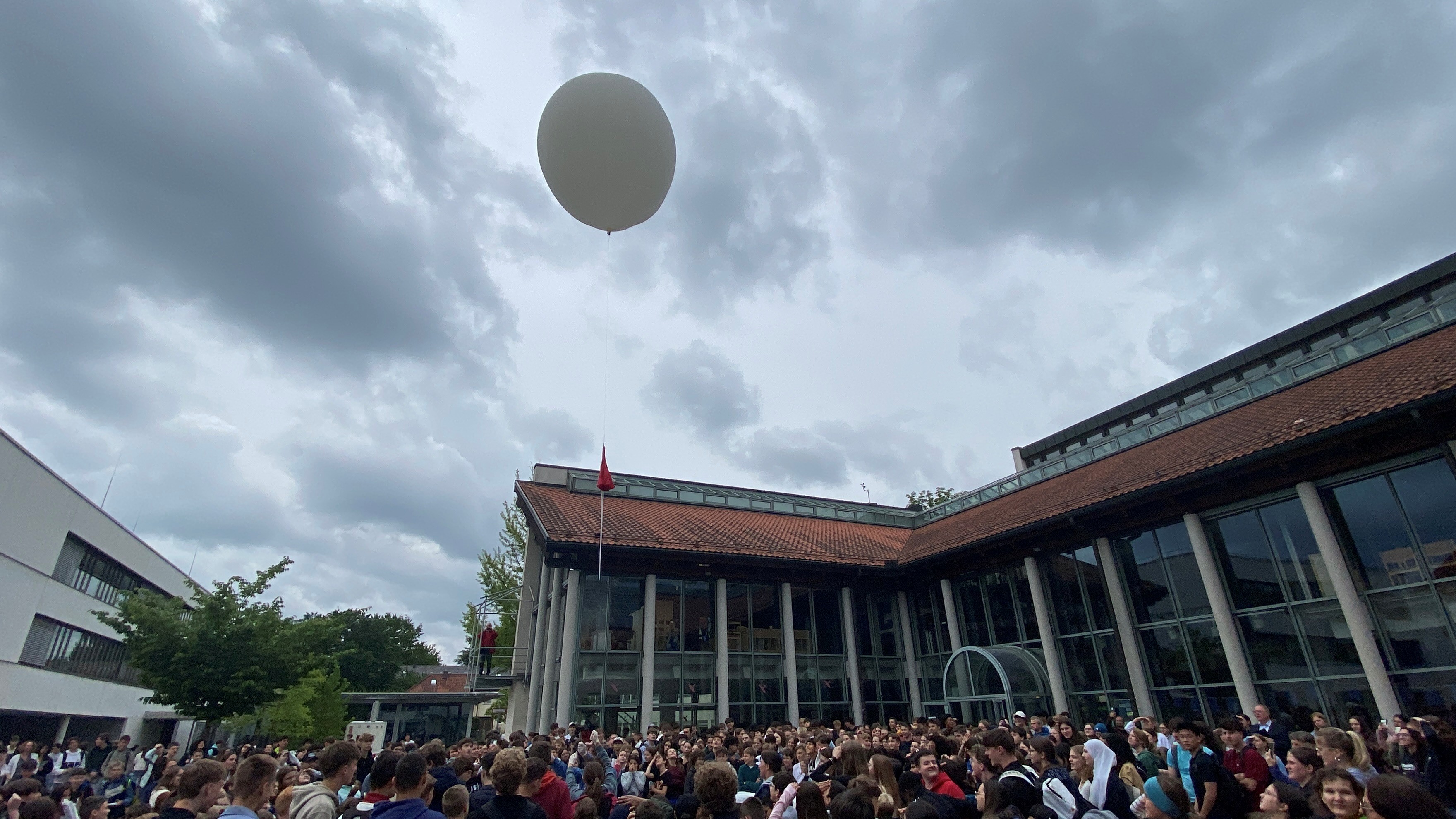 Nach achtmonatiger Vorarbeit eines P-Seminars Physik der 11. Klasse hat heute das ITG in der zweiten Pause sein Schulmaskottchen, den Raben Ignatius, als Piloten eines Stratosphärenflugs ins All geschickt. Gegen 11.20 Uhr gab Dr. Thomas Reiter, externer Partner (Firma Autoliv Dachau) des von der Sparkasse Dachau und einigen Privatpersonen mitfinanzierten Projekts die Starterlaubnis für den Wetterballon, der sich sofort unter dem Beifall der umstehenden Schülerinnen und Schüler in die Luft erhob. Der Ballon stieg rasch in den wolkenverhangenen Himmel und war kurz darauf nicht mehr zu sehen. Drei Begleitfahrzeuge, unterstützt vom DARC (Deutscher Amateur-Radio-Club), fuhren gleichzeitig los, um Ignatius und die Sensorenbox, die unterhalb des Wetterballons hängt, zu verfolgen und nach ihrem Flug die Daten zur Auswertung zu sichern. Schon eine Woche zuvor war ein erster Starttermin angesetzt, aber wegen ungünstiger starker Seitenwinde abgesagt worden. Diese ließen befürchten, dass der Wetterballon ins Hochgebirge abdriften und die Sensorenbox nicht wieder auffindbar herunterkommen würde. In der letzten Stunde hat der Ballon eine Flughöhe von ca. 38,5 km erreicht; dabei ist er immer größer geworden, bis er geplatzt ist und die Sensorenbox zunächst mit hoher Geschwindigkeit Richtung Erde gerast ist. Mittlerweile hat ein Fallschirm ihn auf eine Fallgeschwindigkeit von ca. 5 Meter pro Sekunde Richtung Erde gebremst. Die drei Begleitfahrzeuge folgen dem Wetterballon durchgehend mittels zwei an ihm angebrachten GPS-Trackern, um möglichst bald die als Eigentum des Ignaz-Taschner-Gymnasiums gekennzeichnete Box zu sichern. Gespannt warten nun die jungen Physiker aus der 11. Klasse des ITG mit ihrer Lehrerin Sabine Schlötzer, wohin es den Ballon trägt und welche Daten und Aufnahmen aus der Stratosphäre auswertbar ankommen. Nach aktuellen Berechnungen erwarten wir den Niedergang des Ballons, der recht steil und geradlinig aufgestiegen ist, in der nächsten halben Stunde hinter Landshut und hoffen auf eine Sicherung der Datenbox und einen reibungslosen Sinkflug der Kameras ohne Schäden. Einen besonderen Motivationsschub erhielten die Schülerinnen und Schüler durch eine Video-Grußbotschaft der Bundesforschungsministerin Dorothee Bär und der ehemaligen ITG-Abiturientin Katrin Staffler, Bundestagsabgeordnete der Bezirke Dachau und Fürstenfeldbruck, aus Berlin.