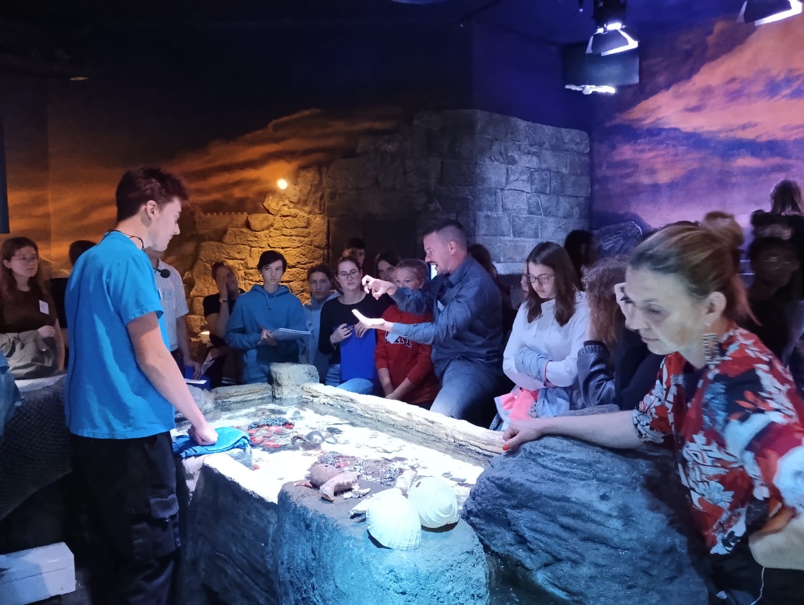 Karin Spiech vom Aquarium Pula, Kroatien, eröffnete am Dienstag das erste Thema des Camps: Sie stellte zwei Schutzprojekte des Aquarium Pula vor. Das Projekt zum Erhalt der Edlen Steckmuschel sowie das zur Rettung der Unechten Karettschildkröte. Diese europäischen Artenschutzprojekte zielen darauf ab, diese beiden sehr gefährdeten Tierarten zu schützen. Im Rahmen eines interaktiven Besuchs des Tierparks Hellabrunn informierten sich die Campteilnehmer dann mittels QR-codierter Podcasts (selbst erstellt von unserem P-Seminar!) über die Faktoren, die zur Bedrohung der Lebewesen unserer Erde beitragen. Der zweite Workshop fand im SeaLife München statt, wo unter fachlicher Leitung von Karin und Tobias Spiech Themen wie Ozeanversauerung, Temperaturanstieg und invasive Arten behandelt wurden.